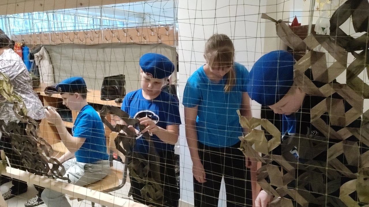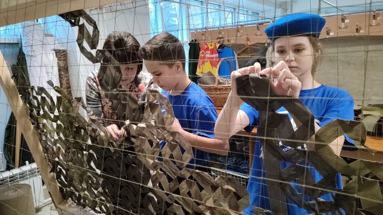 В этот раз ребята за два часа сплели большую сеть, которая поможет скрыть технику, укрытия и военнослужащих на поле боя.