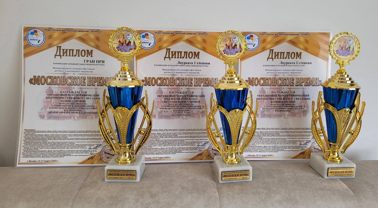 Солнечногорский коллектив завоевал Гран-при в номинации «народный танец» (смешанная группа), стал лауреатом первой степени в номинации «эстрадный танец (степ)» и лауреатом второй степени в номинации «эстрадный танец (степ) - родители».