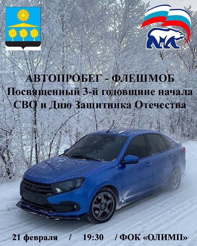 Старт автопробега состоится 21 февраля в 19:30 от физкультурно-оздоровительного комплекса «Олипм». Флаги России для установки на автомобили предоставят организаторы.