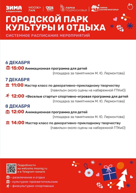 Со 2 по 8 декабря в городском парке культуры и отдыха состоятся разнообразные спортивные и творческие активности для детей и взрослых.