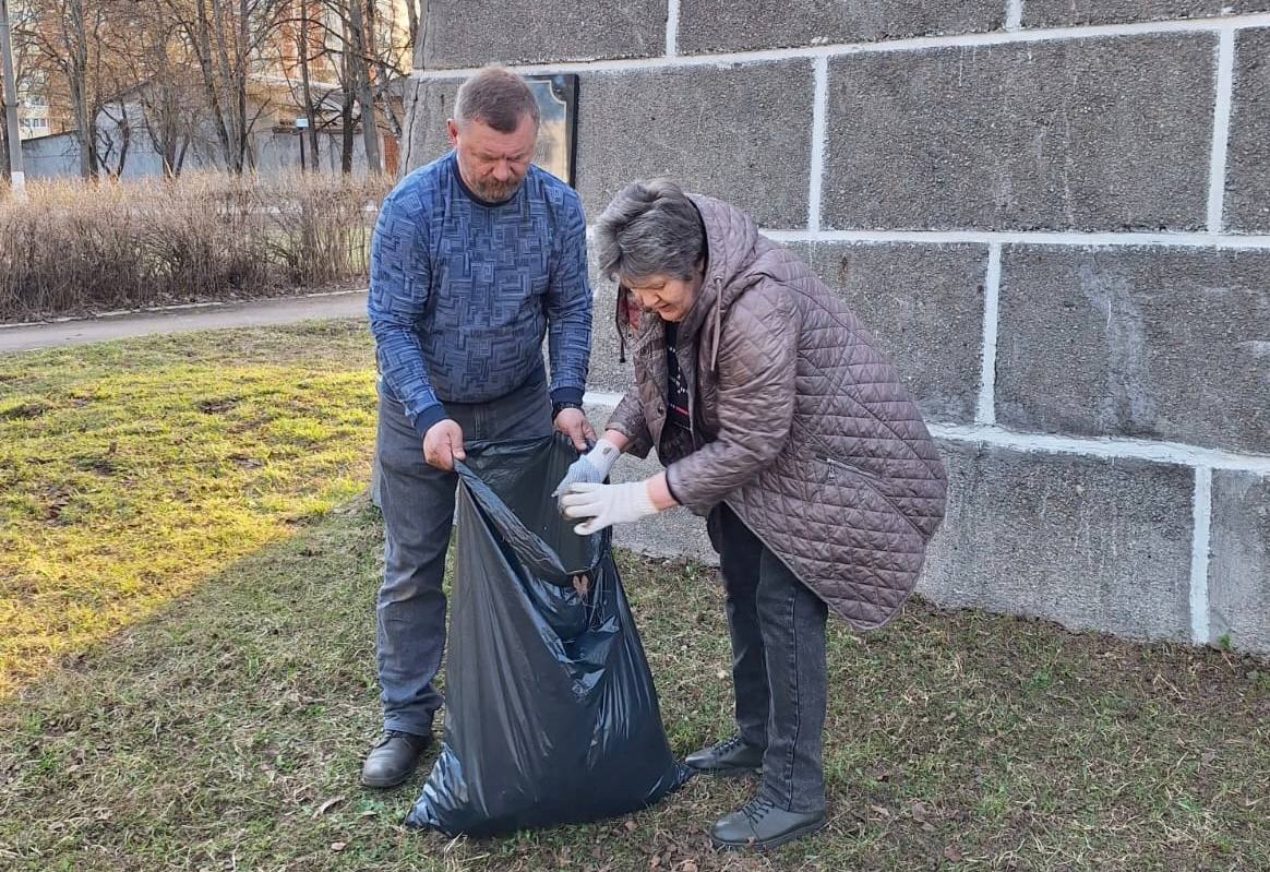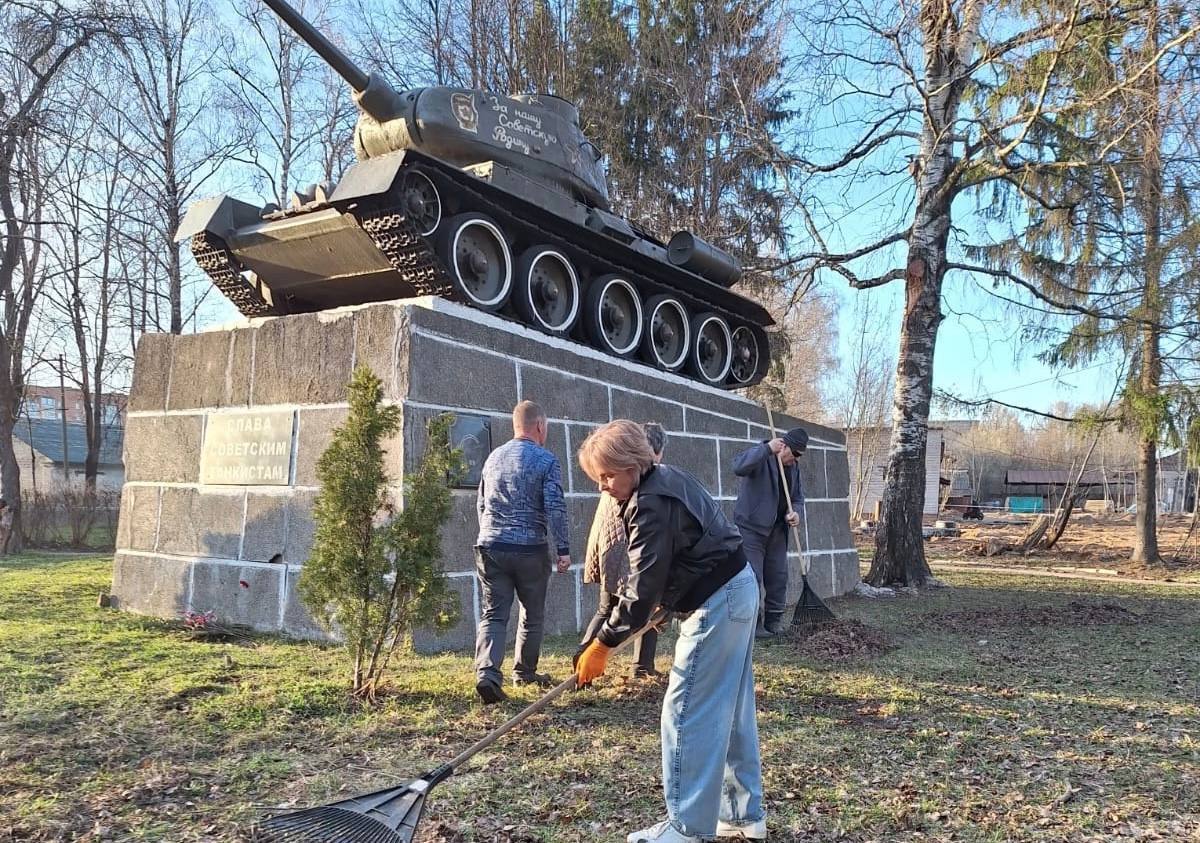 На субботнике общественники убрали территорию, проявив патриотизм и уважение к памяти защитников Отечества.