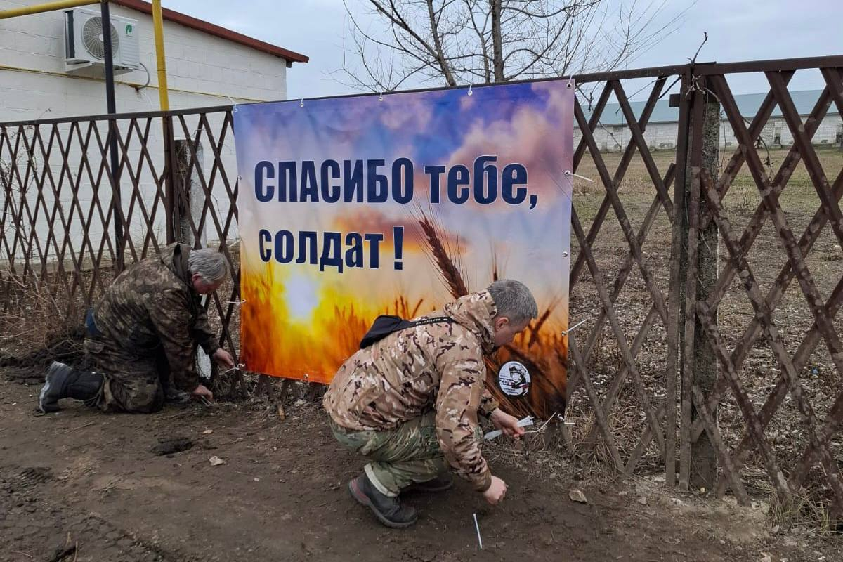 Член Солнечногорского отделения Всероссийской общественной организации ветеранов «БОЕВОГО БРАТСТВА» Юлия Саболевская совместно с активистами волонтёрской группы «ZOV ПОСЫЛКА СОЛДАТУ» размещают баннеры со словами поддержки в зоне специальной военной операции.
