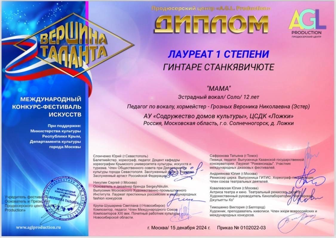 Ансамбли и солисты вокальной студии «Эстер» из Солнечногорска стали призерами и победителями Международного конкурса-фестиваля искусств «ВЕРШИНА ТАЛАНТА».