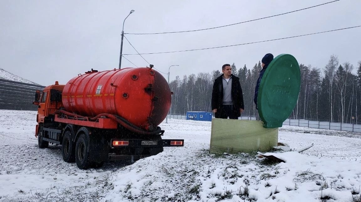 Заместитель Главы городского округа Солнечногорск Кирилл Типографщик вместе с главным специалистом отдела экологии Управления ЖКХ и экологии Алексеем Попковым проверили работу системы инфильтрации.