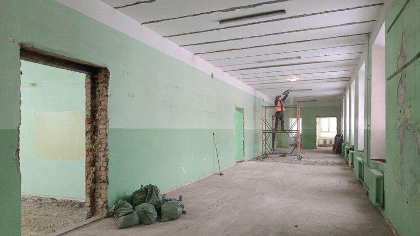 В городском округе Солнечногорск приступили к капитальному ремонту Поваровской школы. Подрядчик занимается демонтажными работами на объекте и проводит подготовку для устройства стяжки на третьем этаже.