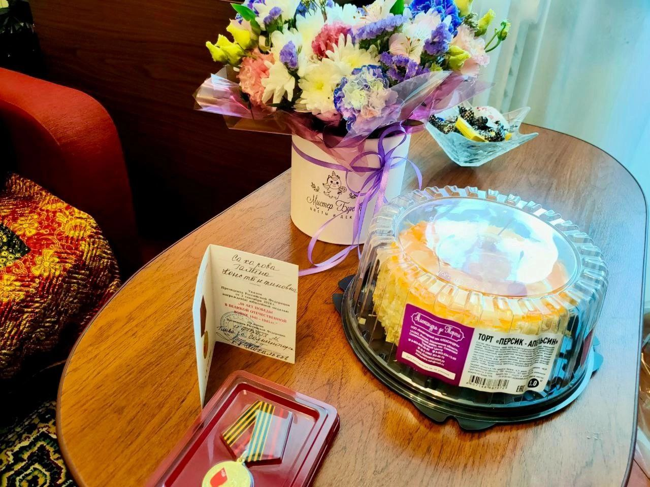 По поручению Губернатора Московской области Андрея Воробьёва и главы муниципалитета Константина Михалькова жительница блокадного Ленинграда Галина Константиновна Сахарова награждена медалью «80 лет Победы в Великой Отечественной войне 1941-1945 гг.». Вместе с медалью первый заместитель главы городского округа Солнечногорск Кирилл Типографщик вручил Галине Сахаровой поздравительный адрес и подарки.