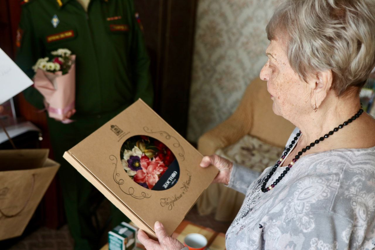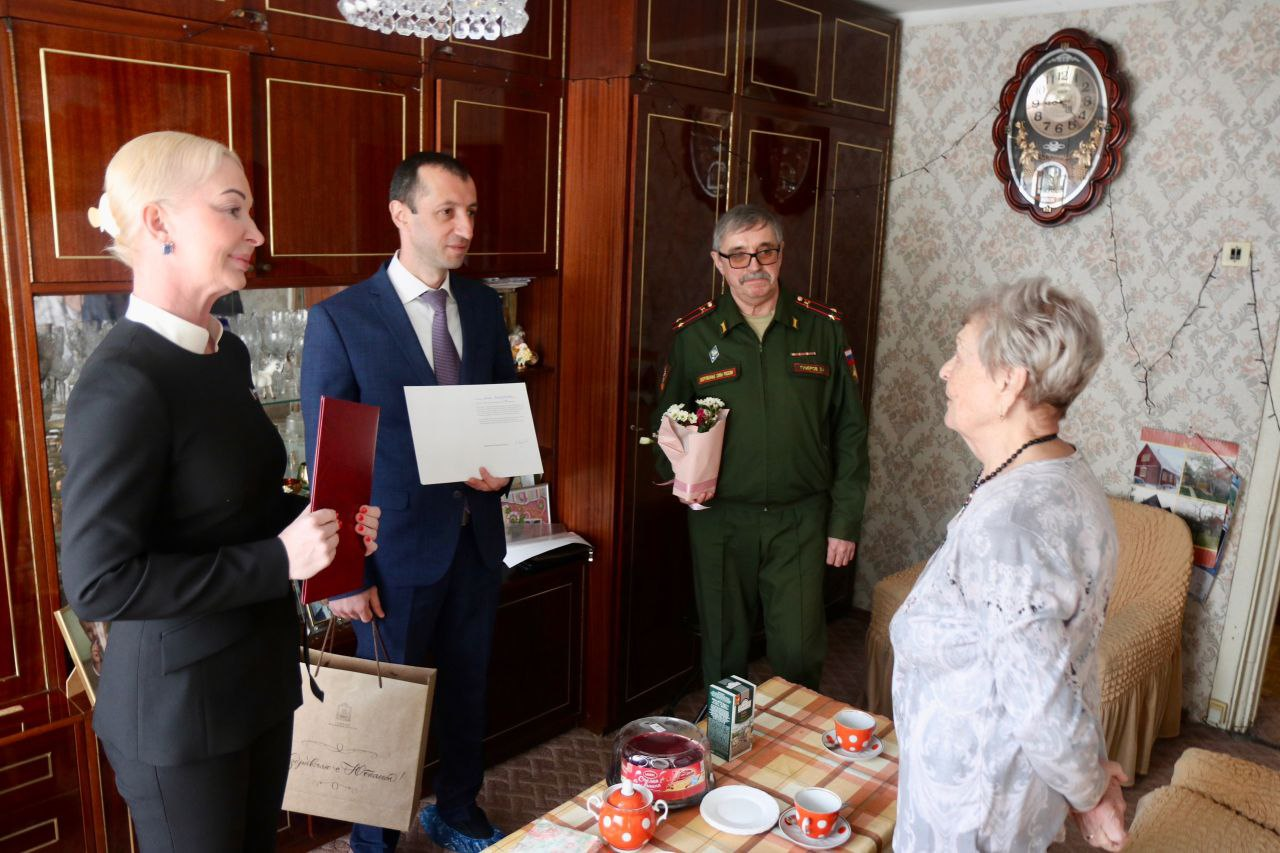 Гости передали ветерану подарки и поздравления от губернатора Московской области Андрея Воробьёва.