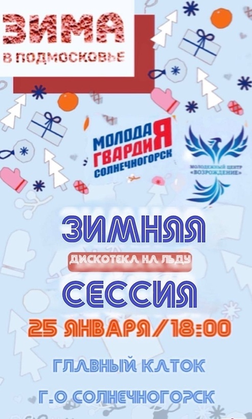 В субботу, 25 января, на центральном катке Солнечногорска в парке культуры и отдыха проведут дискотеку на льду «Зимняя сессия». Она будет посвящена Дню российского студенчества. Начало в 18:00.