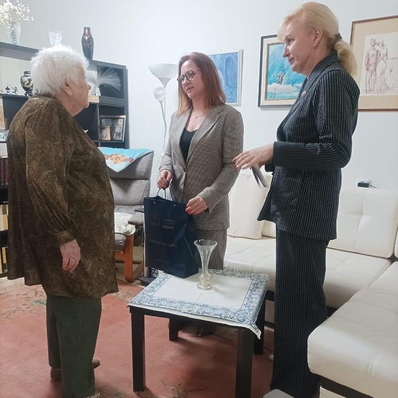 Заместитель главы округа Ольга Мошарова и руководитель фракции «Единая Россия» в Совете депутатов Ольга Гончар навестили Мальцеву Клавдию Викторовну. Блокаду Ленинграда она застала 6-летней девочкой, и одним из её воспоминаний стало то, как жалко ей было маму, которая в те тяжелейшие для страны и города дни искала, чем накормить детей.