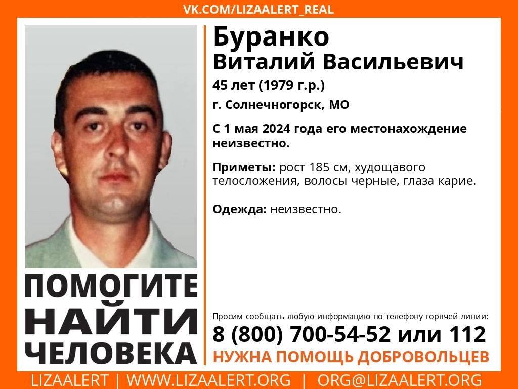 Солнечногорске пропал 45-летний житель Солнечногорска Виталий Васильевич Буранко.