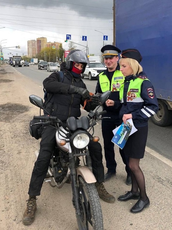 Полицейские поздравляли пешеходов и автолюбителей с наступающим праздником, вручали им георгиевские ленточки, как знак героизма, доблести и славы защитников Отечества.
