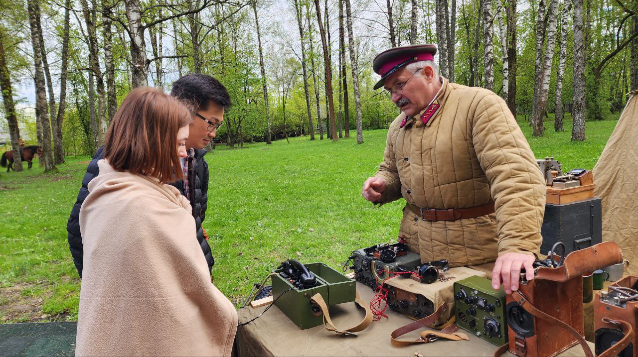 «Наша интерактивная площадка называется «Узел связи». Здесь у нас представлены образцы связи, которые использовались Красной армией в период Великой Отечественной войны. Большая часть экспонатов — это полевые телефоны. Также у нас здесь представлены три вида радиостанций и телеграфный аппарат Морзе. Всеми этими средствами пользовались связисты Красной армии во время Великой Отечественной войны», — рассказал командир военно-исторического клуба «Рота связи» Владимир Гольский.