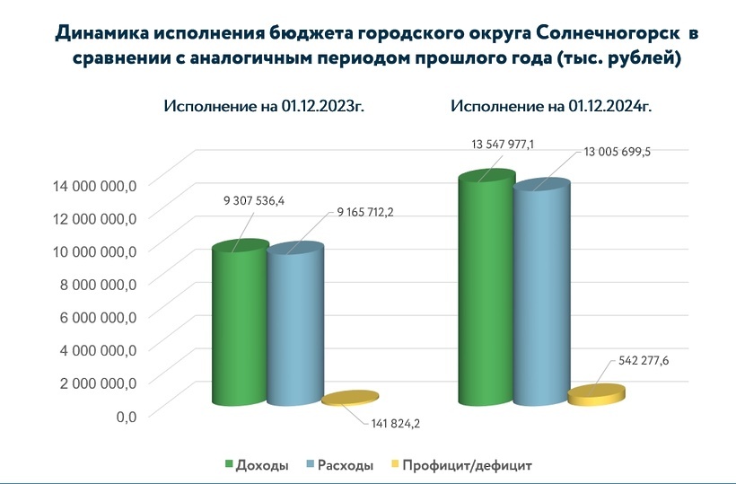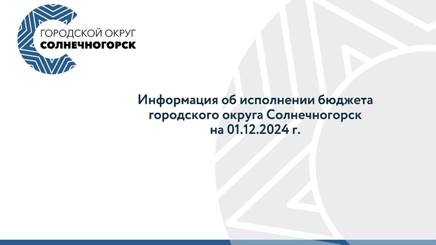 В целях обеспечения доступности и открытости бюджетных данных информируем о результатах исполнения бюджета городского округа Солнечногорск Московской области по состоянию на 01.12.2024 года: