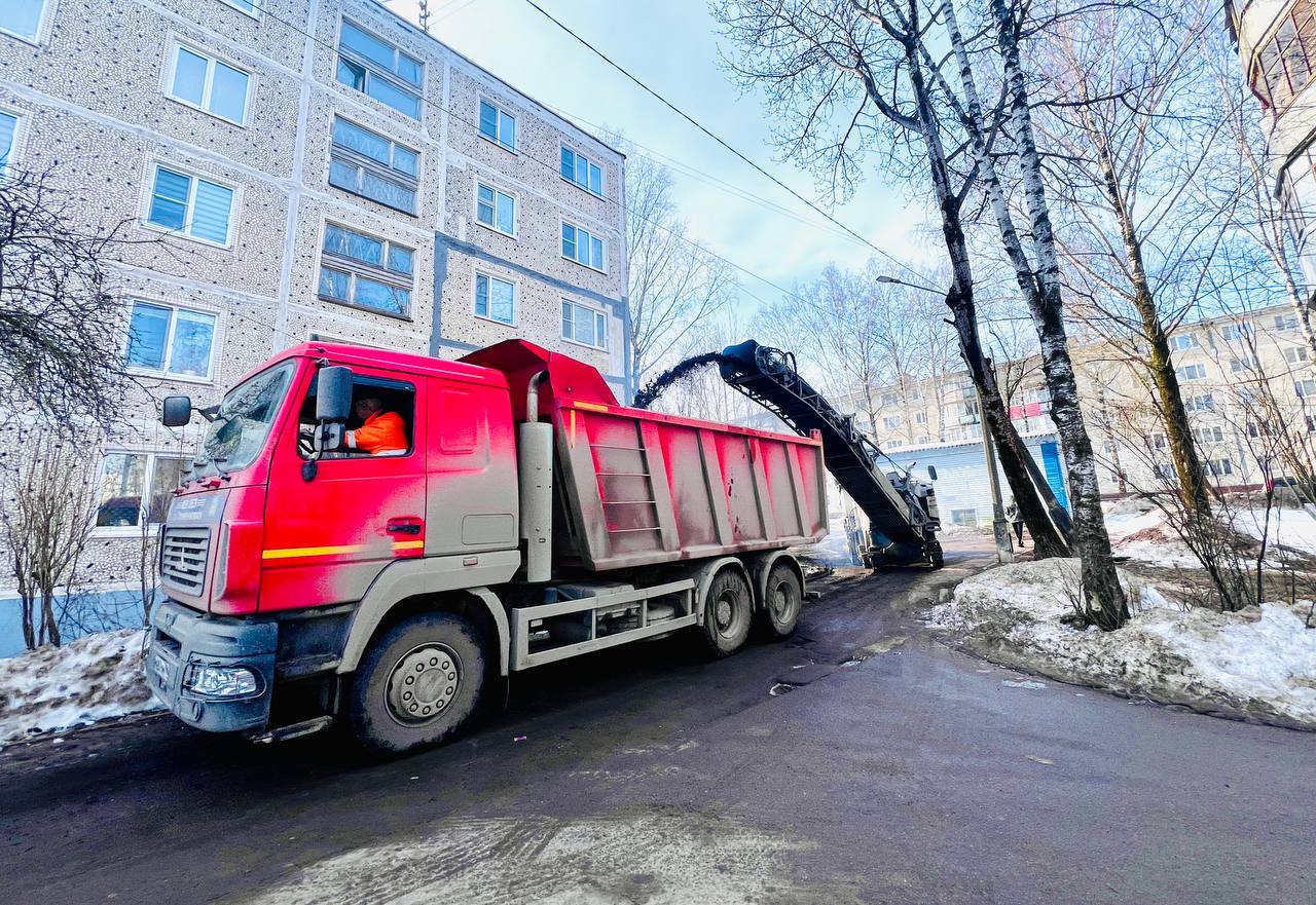 Используется современная технология: фрезеровка, очистка и укладка нового асфальта большими картами — так покрытие получается ровнее и служит дольше.