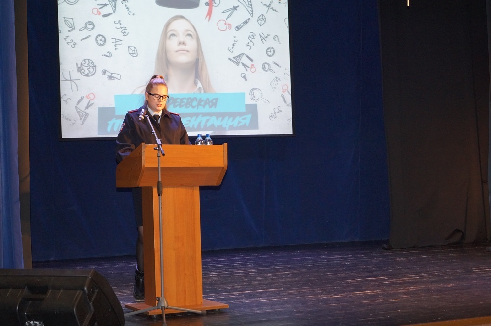 Инспектор отдела по работе с личным составом ОМВД выступила с информацией о порядке поступления в Московский университет МВД России им. В.Я. Кикотя, разъяснила требования, предъявляемые к абитуриентам, ответила на интересующие ребят вопросы.