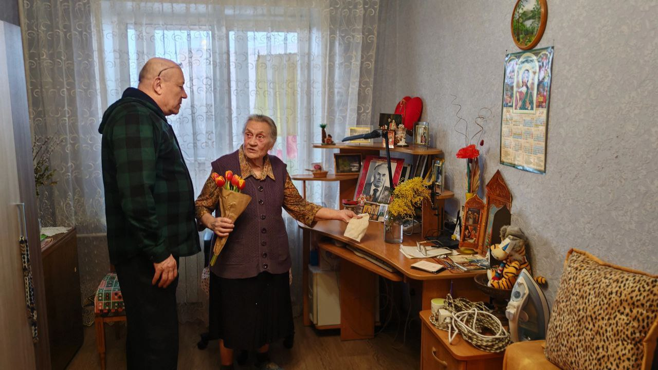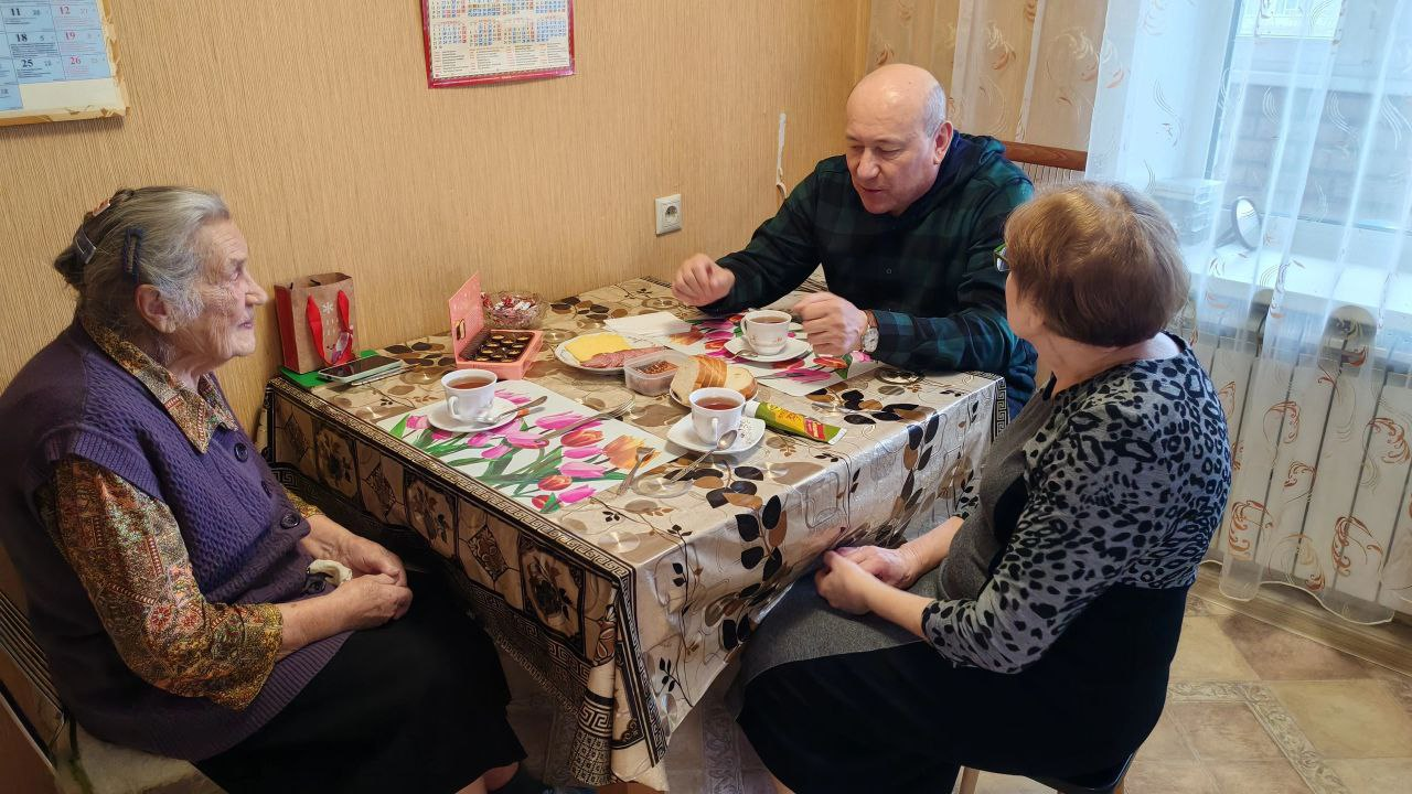 Также Владимир Дацюк передал женщине-ветерану поздравительный адрес и подарки.