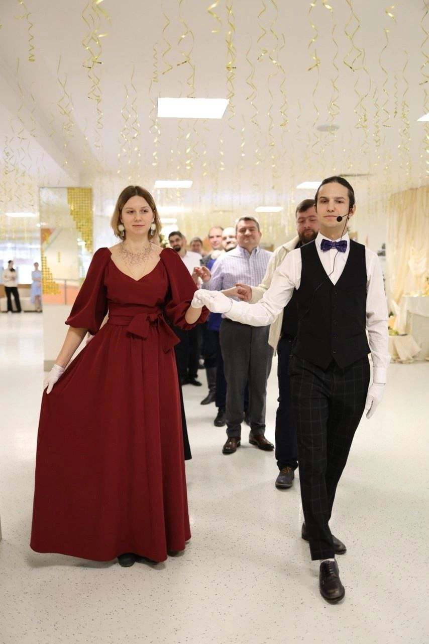 Семейные пары под руководством опытного хореографа разучили танцы разных эпох и культур, таких как мазурка, полонез, московская кадриль и вальс.