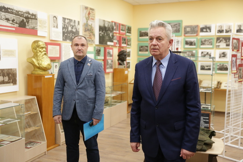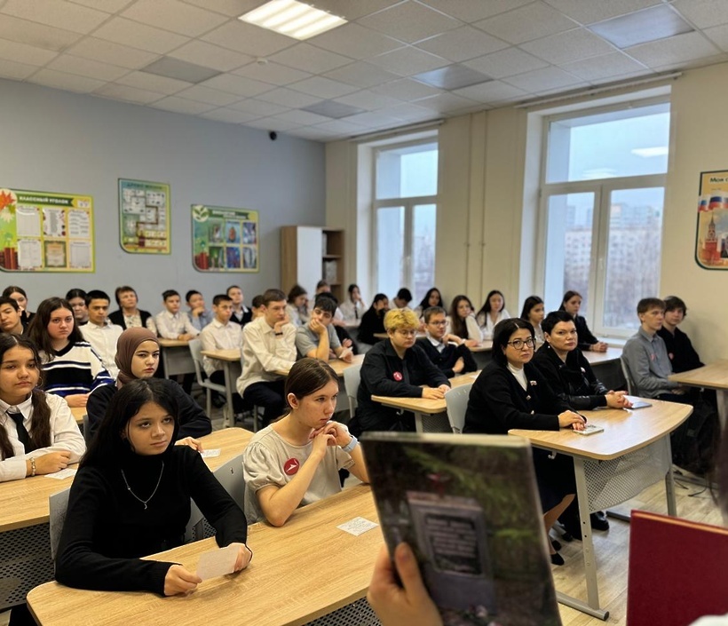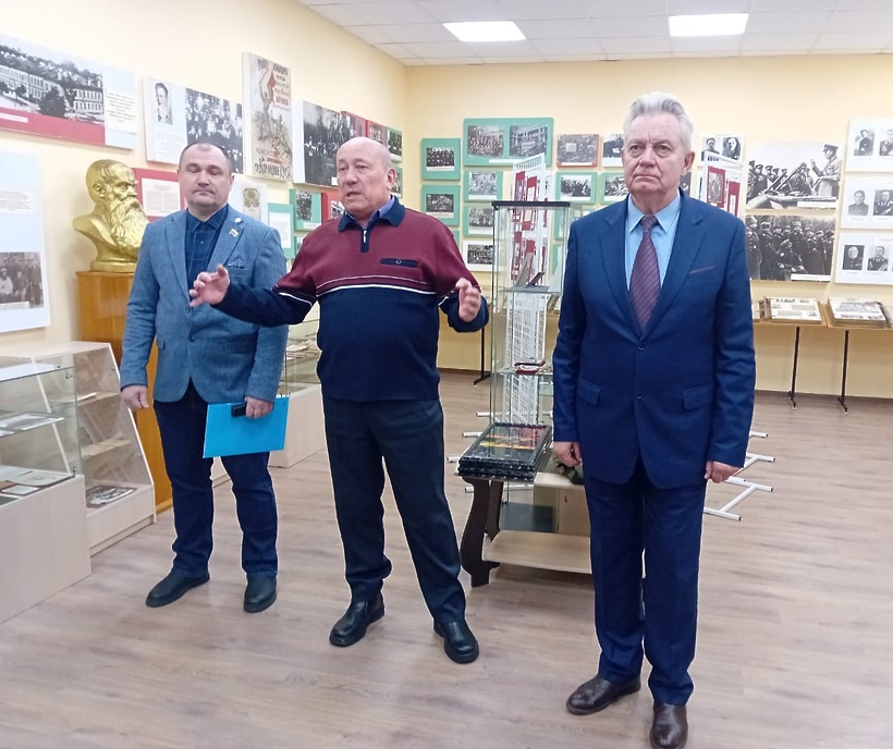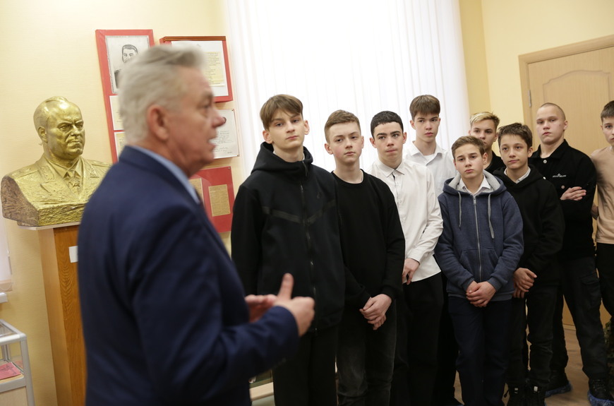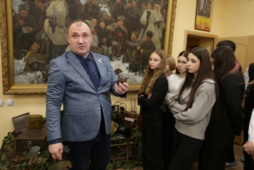 В музее ратной и трудовой славы дома культуры «Выстрел» перед учащимися выступили председатель Совета ветеранов Геннадий Ефимов, директор ДК Владимир Дацюк, а также ветеран боевых действий, участник СВО, депутат Совета депутатов округа Михаил Каталин.