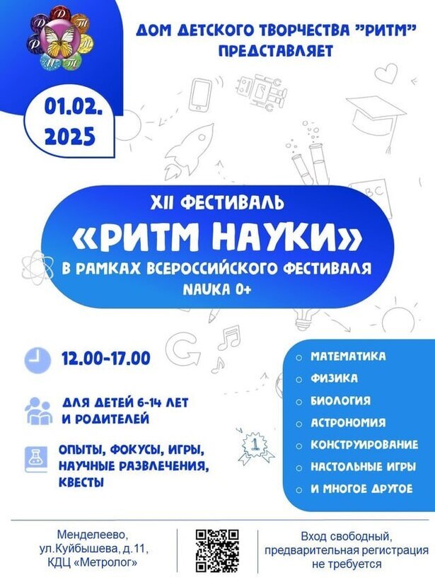 XII Фестиваль «Ритм науки» пройдет в Солнечногорске 1 февраля. Событие состоится в рамках Всероссийского фестиваля «Nauka 0+».