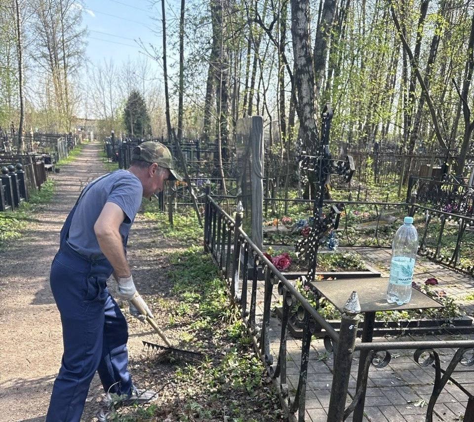 С начала марта специалисты приступили к работам, и на сегодняшний день на более чем 40 местах захоронений, не имеющих родственников, проведена уборка листвы и веток. Работы планируется завершить до 8 мая.