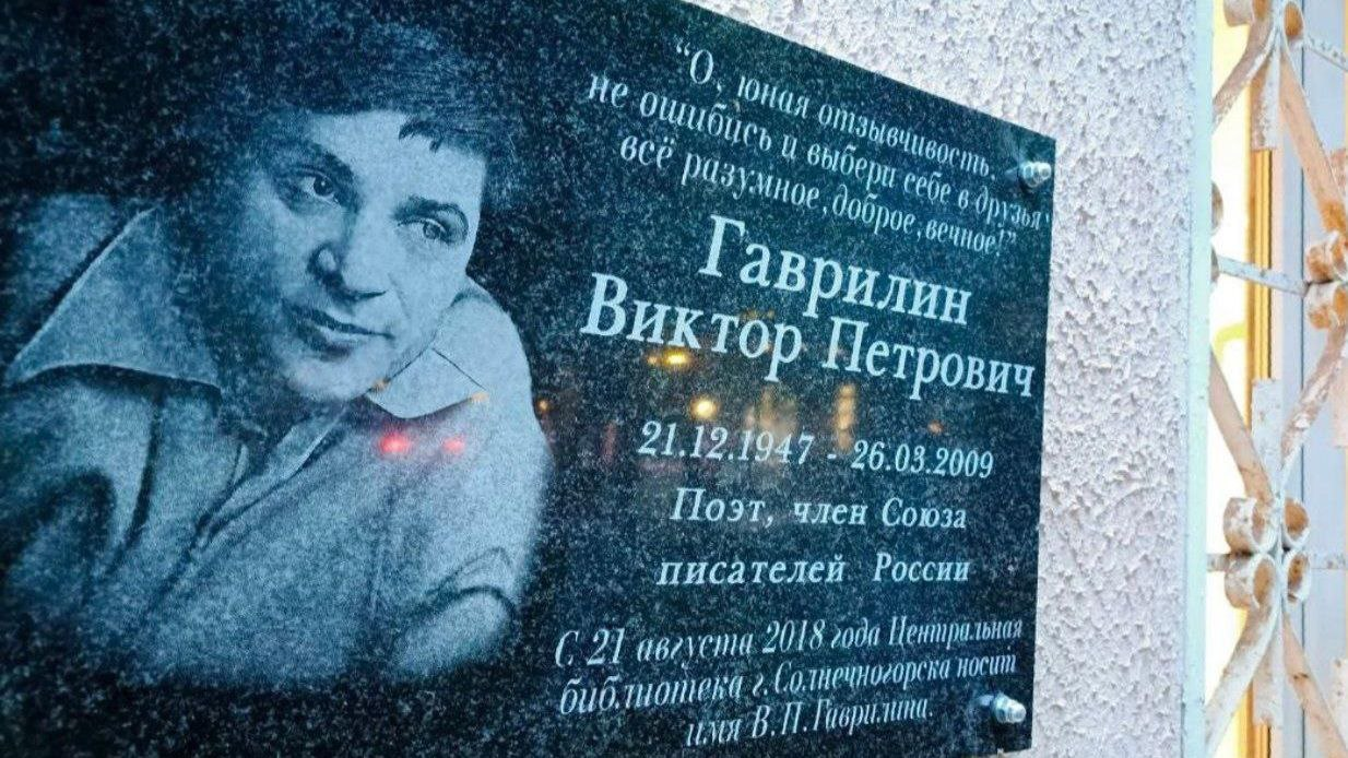Житель Солнечногорска Виктор Гаврилин родился на Алтае, в городе Бийске. Несмотря на тяжкий недуг, прожил достойную жизнь и реализовал себя в творчестве: издал 11 книг стихотворений, был лауреатом литературных премий, вел поэтическую страничку на сайте Стихи.ру. После его смерти, 26 марта 2009 года, ее продолжает наполнять неизданными стихотворениями жена Виктора Петровича.