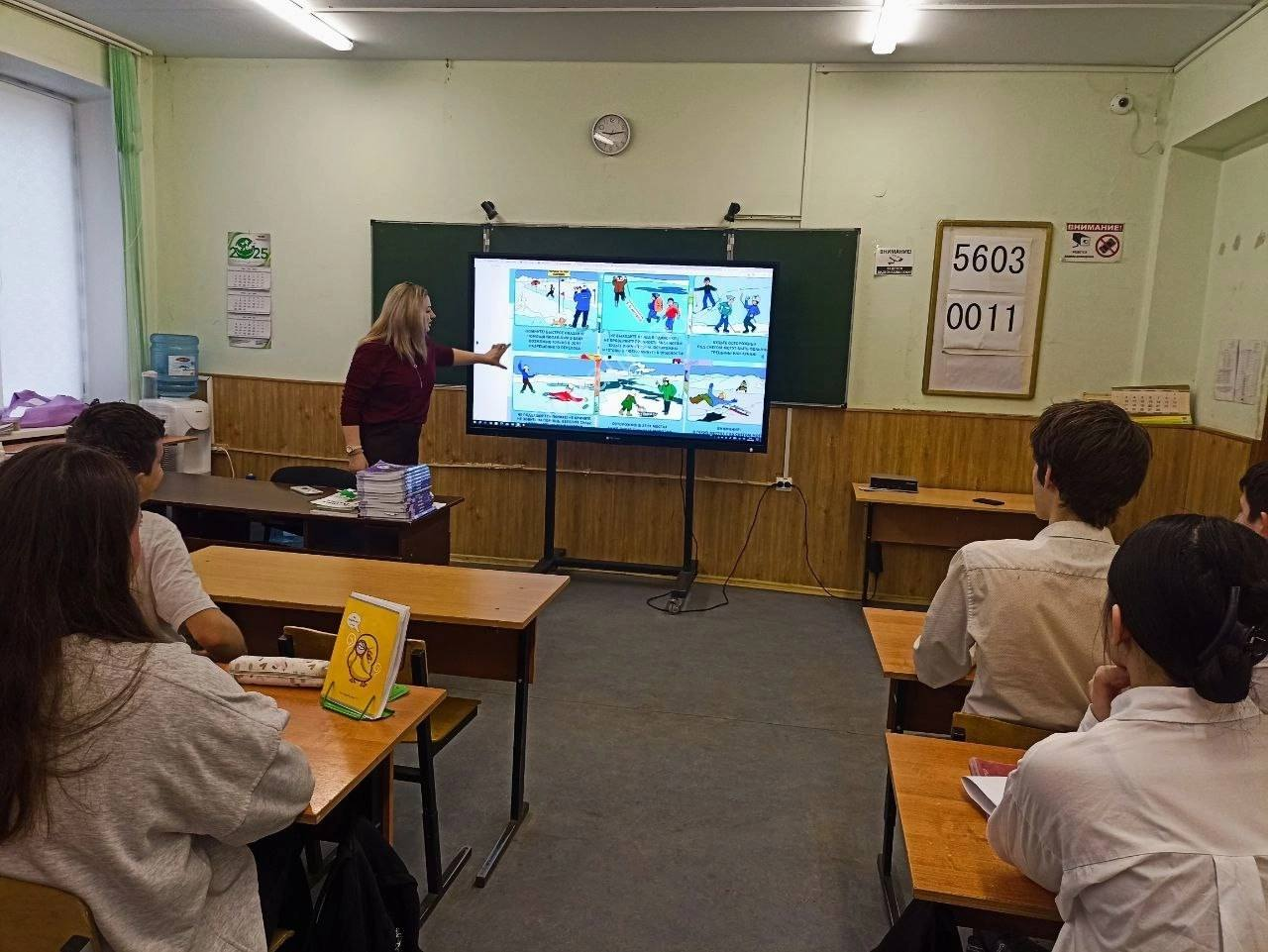 Например, в гимназии №6 в каждом классе ребята повторили основные правила безопасности на льду и посмотрели тематический видеоролик «Осторожно, тонкий лед!».