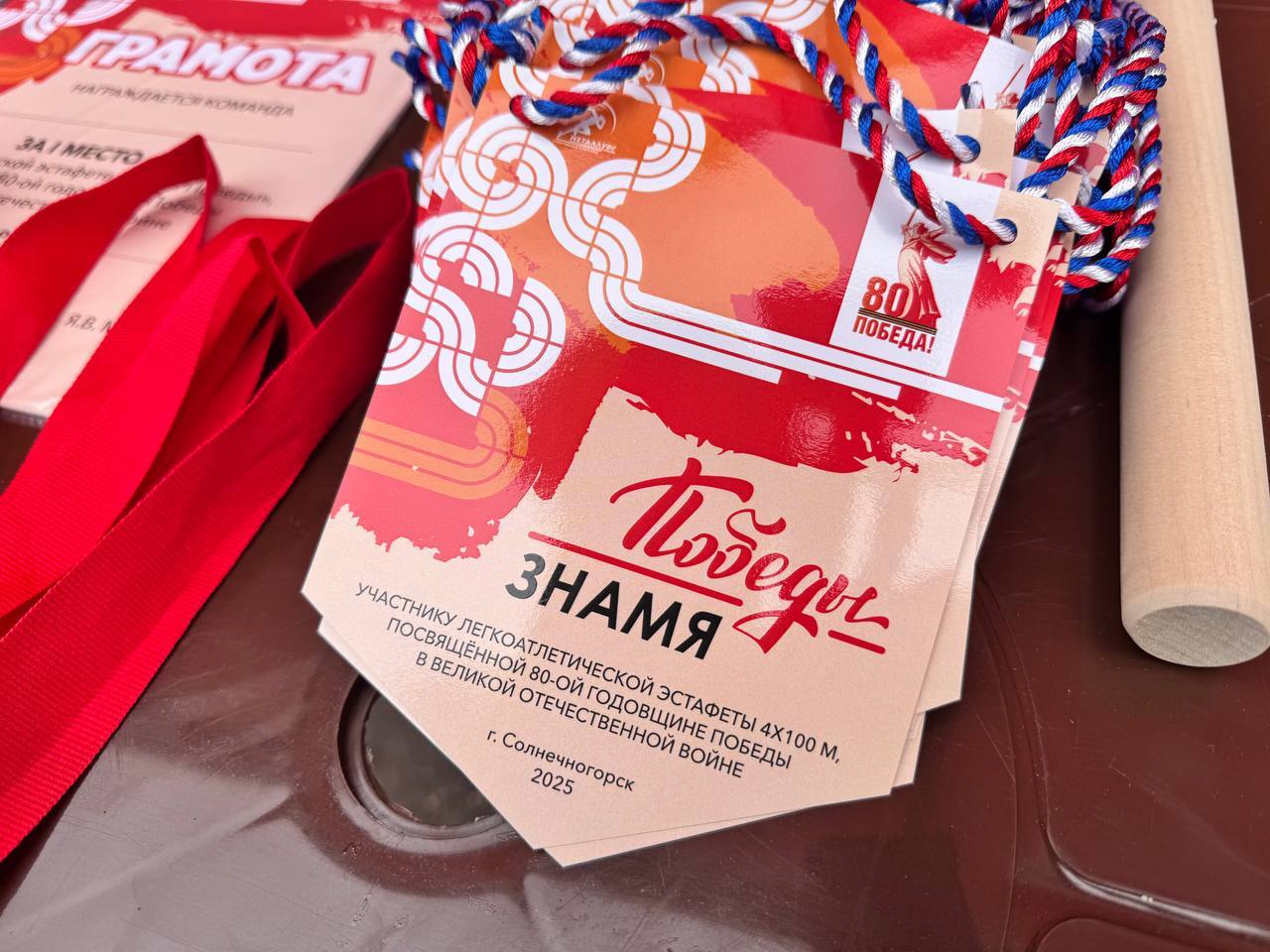 На стадионе спортивного комплекса «Металлург» в Солнечногорске прошла легкоатлетическая эстафета «Знамя Победы». Мероприятие посвящено 80-летию Победы в Великой Отечественной войне.