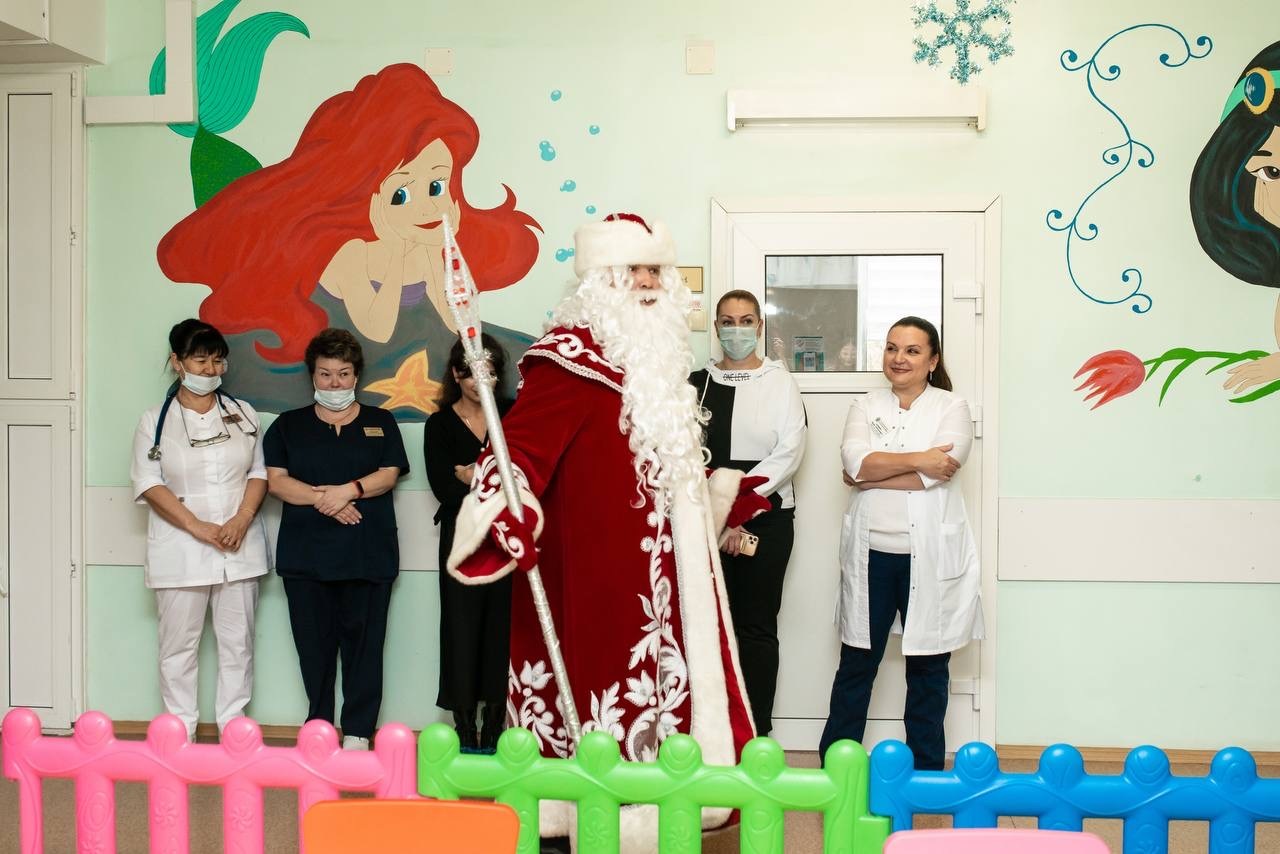 Для маленьких пациентов была устроена праздничная программа с участием Снегурочки и Деда Мороза. Все дети получили подарки, что добавило атмосферы волшебства и радости в их пребывание в больнице.